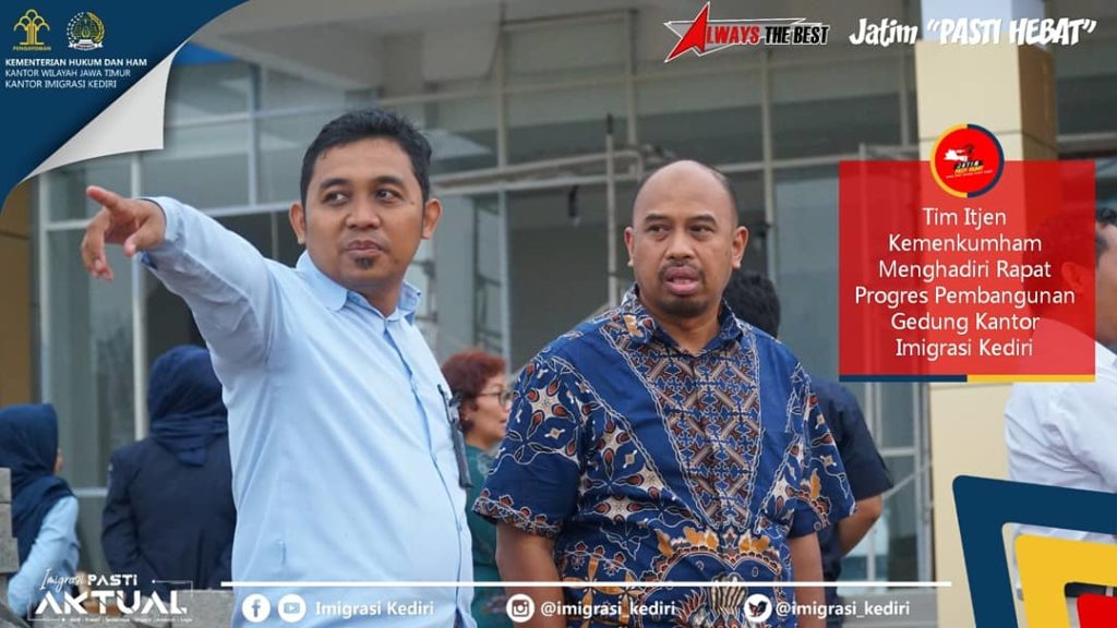 KEDIRI – Kamis (12/12). Tim dari Inspektorat Jenderal Kemenkumham RI bertandang ke lokasi proyek pembangunan Gedung Kantor Imigrasi Kediri yang baru di Kecamatan Grogol Kabupaten Kediri. Tim tersebut ke lokasi proyek guna mengikuti Rapat Progres Penyelesaian Pekerjaan Pembangunan Gedung Kanim Kediri yang dilangsungkan hari ini bersama dengan pelaksana proyek, pengawas, TP4D Kejaksaan Kab Kediri, tim [...] Narasumber Peraturan Keimigrasian bagi Lembaga Pendidikan dan Mahasiswa Asing