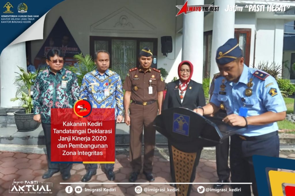 KEDIRI – Senin (06/01). Menggambil tema “SDM Unggul Kemenkumham Maju”, pagi ini Kemenkumham RI melaksankanan Deklarasi Janji Kinerja Tahun 2020 dan Pencanangan Pembangunan Zona Integritas di Graha Pengayoman Jakarta. Perwakilan Kantor Imigrasi Kediri dan seluruh UPT Kemenkumham RI mengikuti acara ini yang disiarkan langsung melalui sambungan video teleconference. Bapak Yasonna H Laoly, Menteri Hukum dan […]