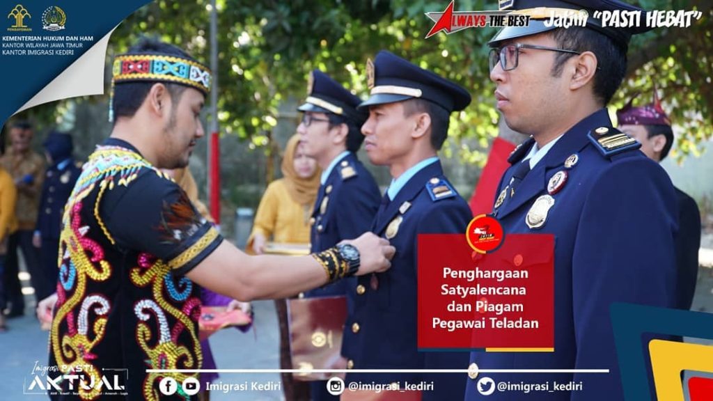 KEDIRI – Sabtu (17/08). Dalam pelaksanaan Upacara Peringatan HUT RI ke-74, Kakanim menyematkan Penghargaan Satyalencana kepada tiga pegawai dan menyerahkan piagam penghargaan kepada tiga pegawai teladan. Tiga pegawai (ASN) yang mendapatkan Penghargaan Satyalencana tersebut adalah Ade Yanuar Ikbal, Heriyanto, dan Aliga Fauzan karena telah berbakti selama 10 tahun lebih dengan menunjukkan kecakapan, kedisiplinan, kesetian, dan […]