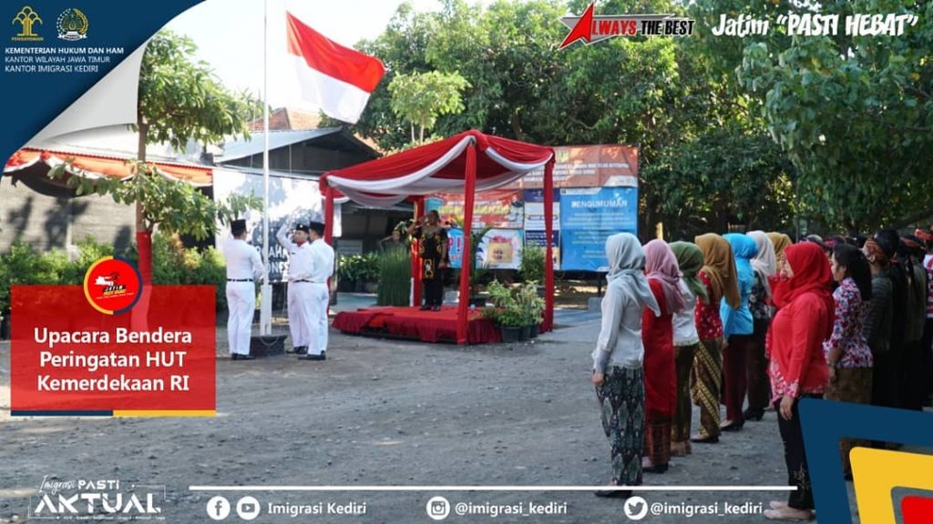 KEDIRI – Sabtu (17/08), Kantor Imigrasi Kediri melaksanakan Upacara Bendera Peringatan Hari Kemerdekaan Republik Indonesia Ke-74 yang diikuti oleh seluruh pegawai dan honorer. Menjadi Inspektur Upacara adalah Kepala Kantor Imigrasi Kediri, Bapak Rakha Sukma Purnama, yang membacakan naskah Sambutan Menteri Hukum dan HAM RI dalam amanatnya. Dirgahayu Republik Indonesia Selamat Ulang Tahun Republik Indonesia Ke-74