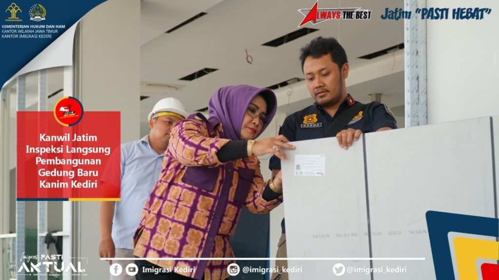 Saat seluruh pegawai melakukan pelayanan kepada masyarakat, kantor kami mendapatkan kunjungan dari Kadiv Keimigrasian Kemenkumham Kanwil Jatim, Bapak Pria Wibawa. Didampingi Kakanim, Kadivim berkeliling memastikan pelayanan keimigrasian terhadap masyarakat dilakukan secara prima dan sesuai prosedur. Kadivim juga sempat berbincang dengan salah satu pemohon paspor yang sedang menunggu antrian wawancara. Setelah berkeliling, Kakanim menemani Ibu Kakanwil, [...] Kanwil Jatim Inspeksi Langsung Progres Pembangunan Gedung Baru Kanim Kediri