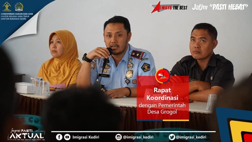KEDIRI – Senin (05/08). Hari ini di Kantor Desa Grogol telah dilaksanakan Rapat Koordinasi dengan Pemerintah Desa Grogol terkait pembangunan gedung Kantor Imigrasi Kediri. Rapat ini dipimpin oleh Kepala Desa Grogol serta dihadiri oleh Kakanim Kediri beserta staf, Camat Grogol, TP4D Kejaksaan Kabupaten Kediri, Inspektorat Kabupaten Kediri, Perangkat Desa Grogol, BPD, LPMD dan tokoh masyarakat. […]