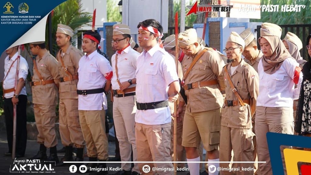 Ada yang berbeda dengan pakaian yang dikenakan pegawai Kantor Imigrasi Kediri. Hari Kamis, 08/08/2019, dari apel pagi sampai saat bekerja & pelayanan, seluruh pegawai Kanim Kediri mengenakan kostum dengan tema perjuangan. Penggunaan baju perjuangan setiap hari Kamis selama bulan Agustus ini dimaksudkan untuk menyambut & memeriahkan Bulan Kemerdekaan.