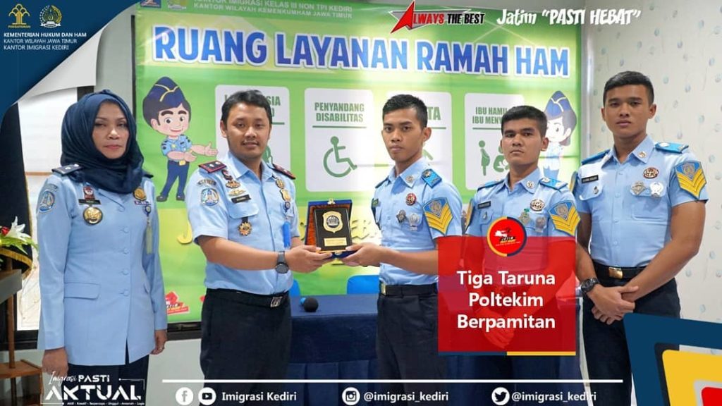 KEDIRI – Senin (29/07). Hari ini, tiga taruna tingkat tiga angkatan 19 Politeknik Imigrasi atas nama Dharma Sanjaya, Fauzan Alhaqq Yuandri, dan M. Rizki Ghozali telah menyelesaikan program KKN-nya di Kantor Imigrasi Kediri. Selama sebulan berada di Kanim Kediri, tiga taruna ini dikenal disiplin, sopan, patuh, & banyak membantu dalam pelayanan. Hari ini Kanim Kediri […]