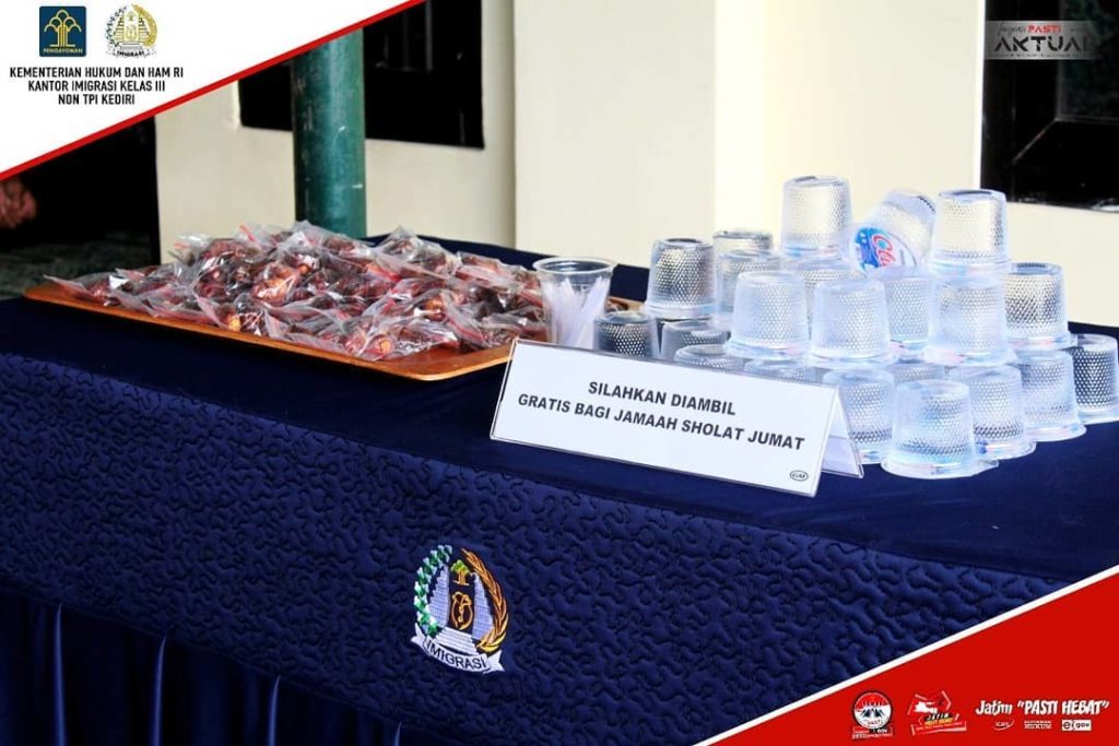 Ada satu hal yang membuat sholat Jumat tanggal 08 Februari 2019 nampak berbeda dari biasanya di Mushola Darussalam Kanim Kediri. Seusai menunaikan ibadah wajib, jamaah sholat Jumat dapat mengambil kurma dan air mineral yang disediakan gratis di depan mushola. Program peningkatan pelayanan ini merupakan program baru dari Imigrasi Kediri atas ide dari Bapak Kepala Kantor, […]