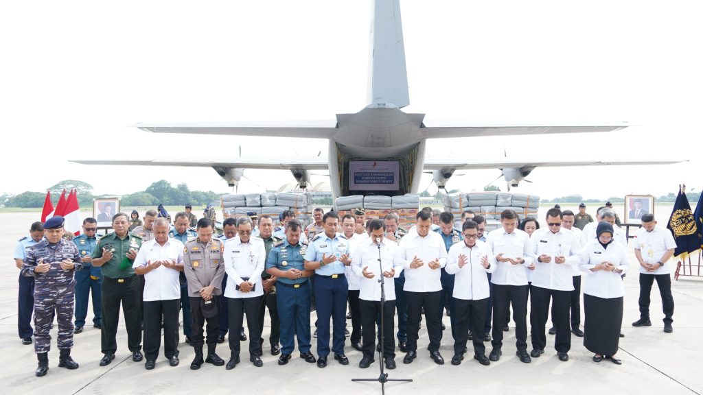 bantuan kemanusiaan di Base Ops Bandara Halim Perdanakusuma, Jakarta Timur,